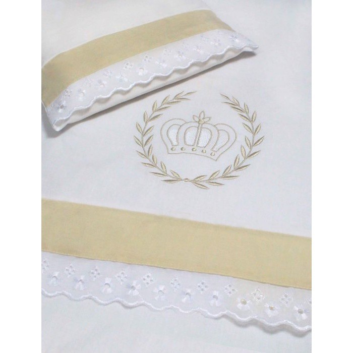 Jogo de Lençol para Berço Americano 3 pçs Bordado 100% Algodão Realeza Cáqui