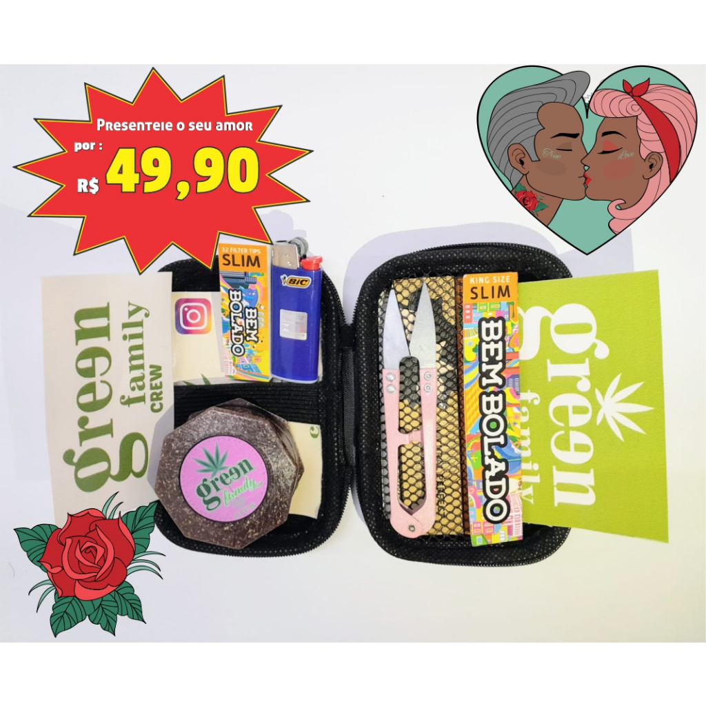 Estojo para Maconheiro com 7 itens 4e20 Reggae + Case + Seda + Triturador Fibra de Coco - Green Family