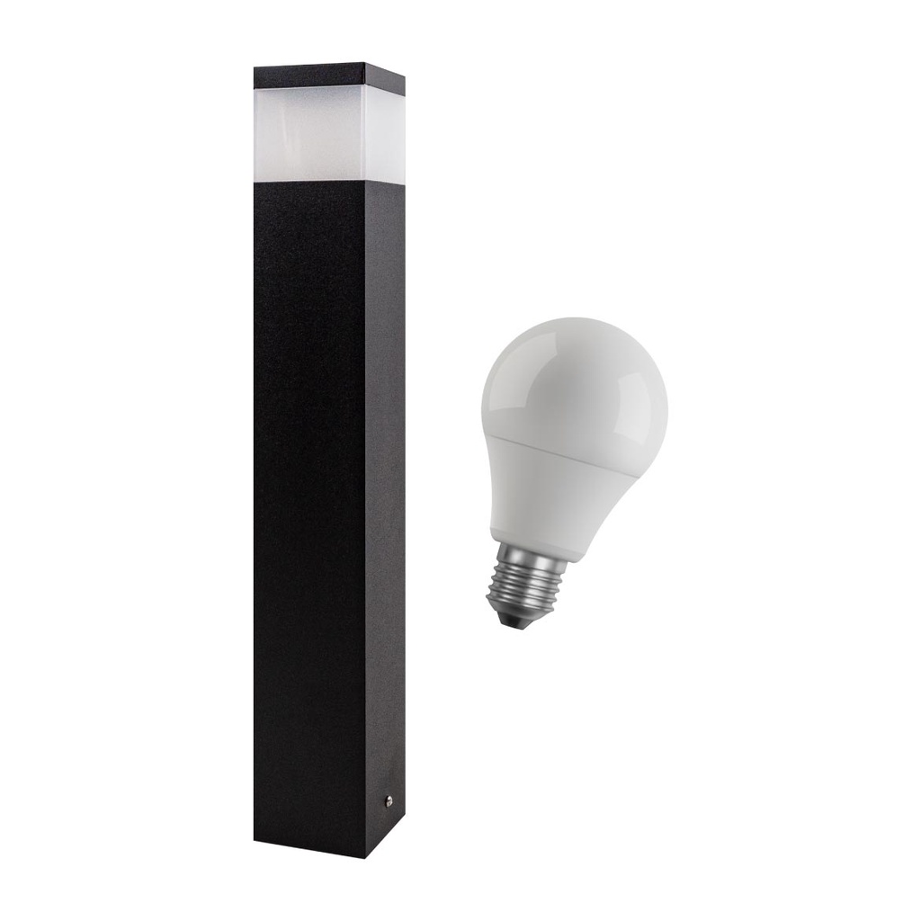 Poste luminária jardim balizador 50cm E27 preto + LED 12W branco frio st222