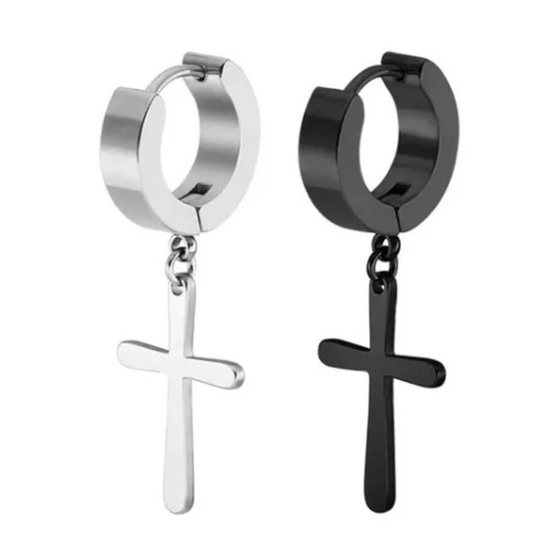 Brinco Masculino Argola Cruz Prata / Preto/dourado - Aço Inoxidável