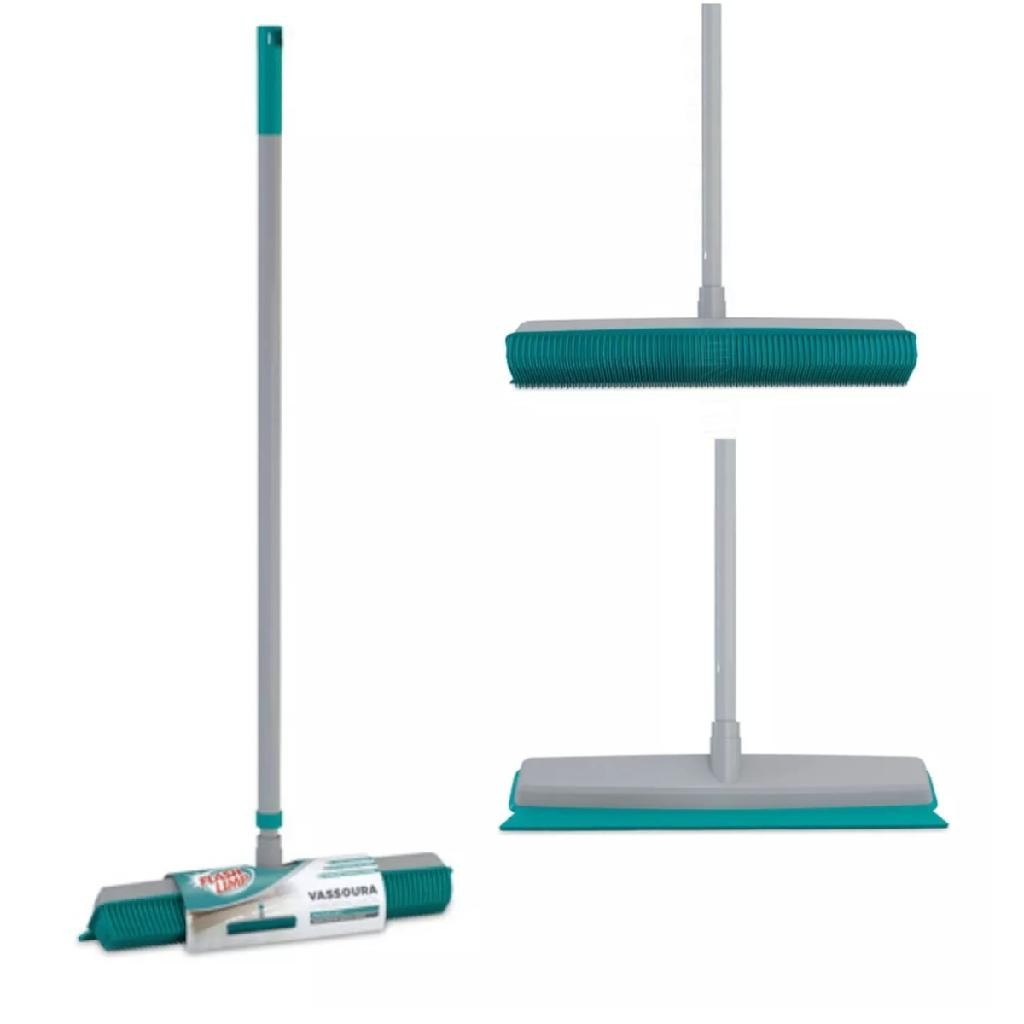 Vassoura Rodo 2 em 1 Multiuso Varre Seca e Tira Pelos Emborrachada Silicone Flash Limp FLP6132
