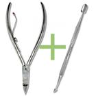 Alicate de cutícula + espatula dupla em inox profissional para manicure e pedicure e podoligia