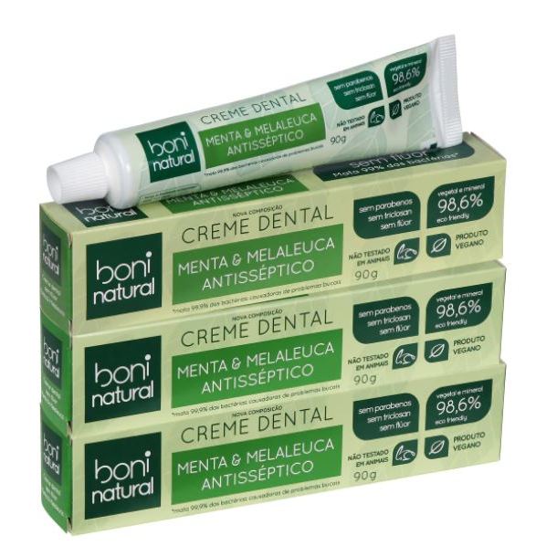 Kit 3 Creme Dental Natural Menta e Melaleuca Sem Flúor 90g Boni