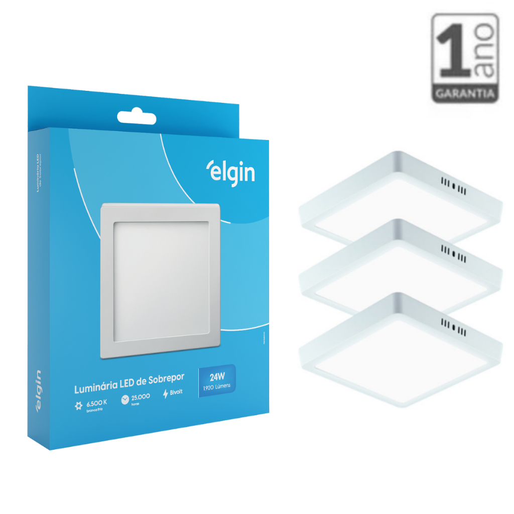 kit 3 painel led plafon luminária 24w sobrepor 30x30 branco frio 6500k bivolt