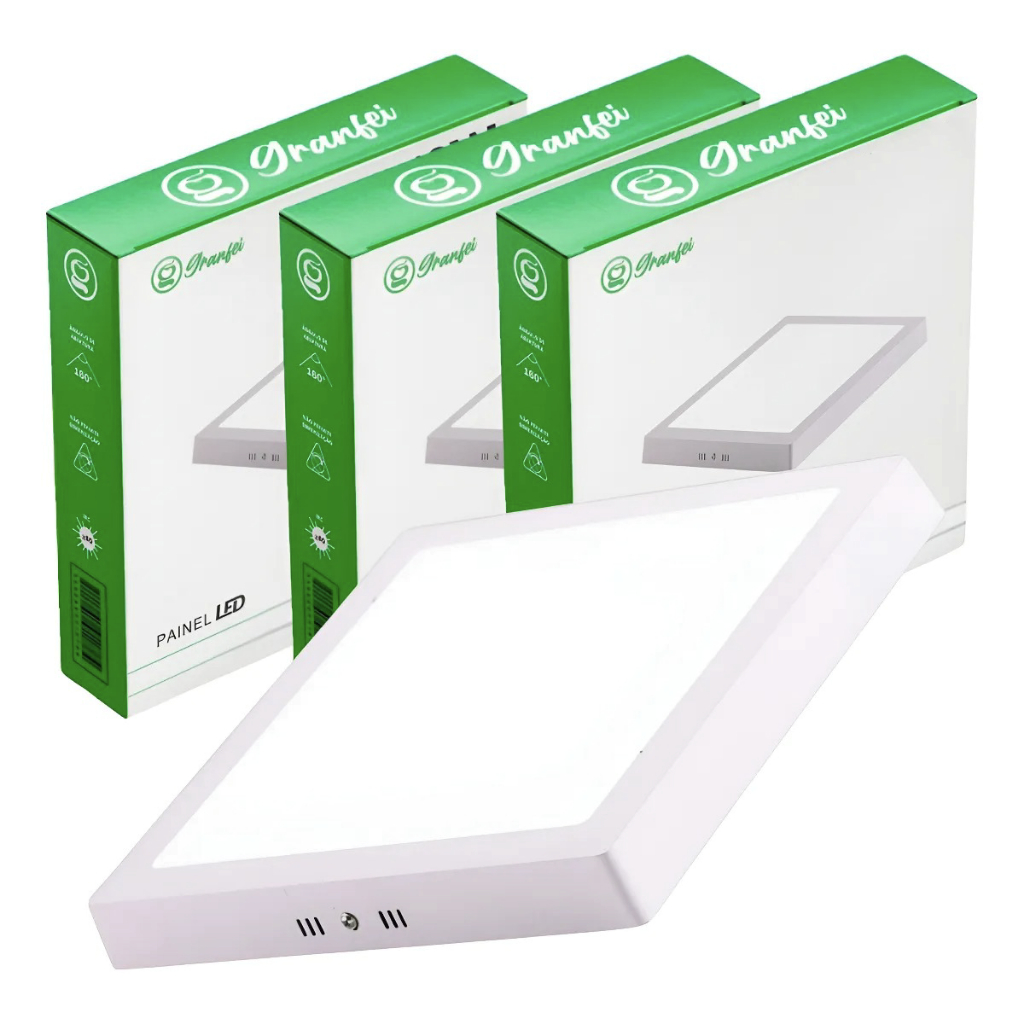 Kit 3 Luminária Painel Plafon Led Alumínio Embutido | Sobrepor | 18W~24W | Branco Frio | Branco Quente | Luz Neutra