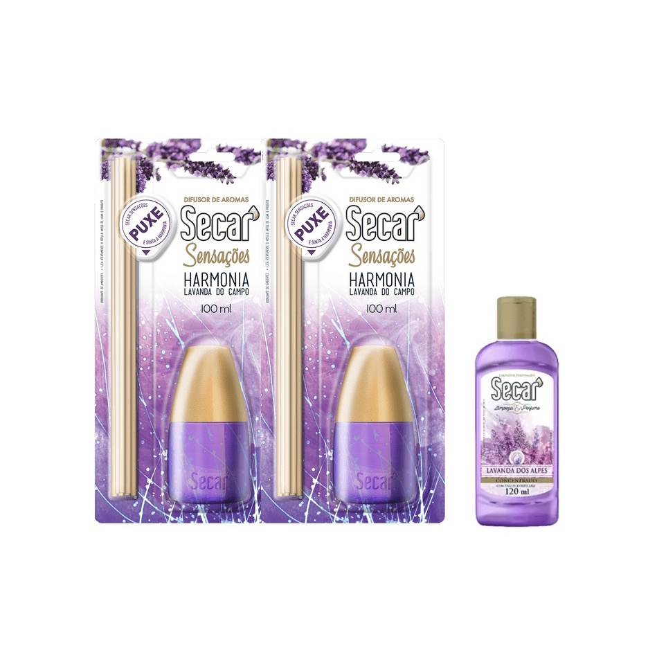 Kit 2 Difusor de Aromas Secar lavanda + 1 Limpador Perfumado