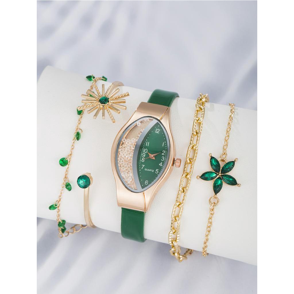 Conjunto de 5 peças de relógio feminino, conjunto de presente com pulseira, colar, brincos, pulseira de Metal de diamant