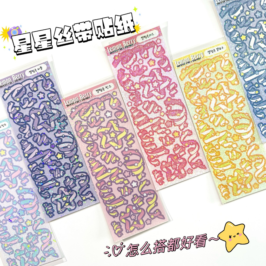 Adesivos Decorativos Coreanos Laser Star Ribbon Photo Card Manual Do Livro De Rascunho Diário Planejador Diy