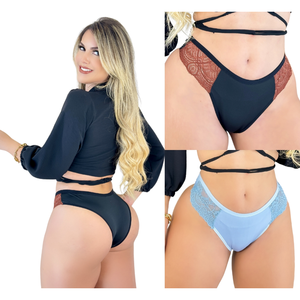 Kit C/ 10 Calcinhas Tanga Em Renda Lateral Tanga Cintura Alta