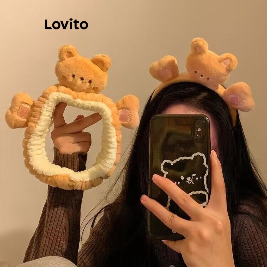 Lovito Tiara Feminina De Urso De Pelúcia Com Coração Fofo De Desenho Animado Para Mulheres LFA13606