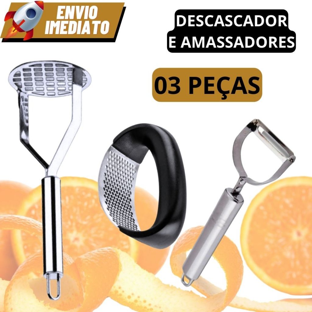 Descascador De Alimentos 3 Em 1 Fácil E Prático 8X16CM Resistente Com Cabo Plástico E Aço Inox Top Útil