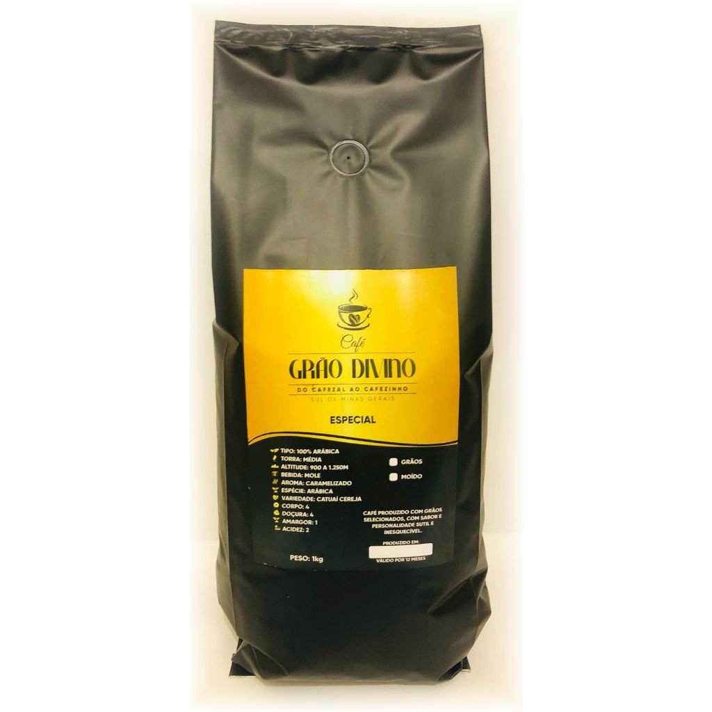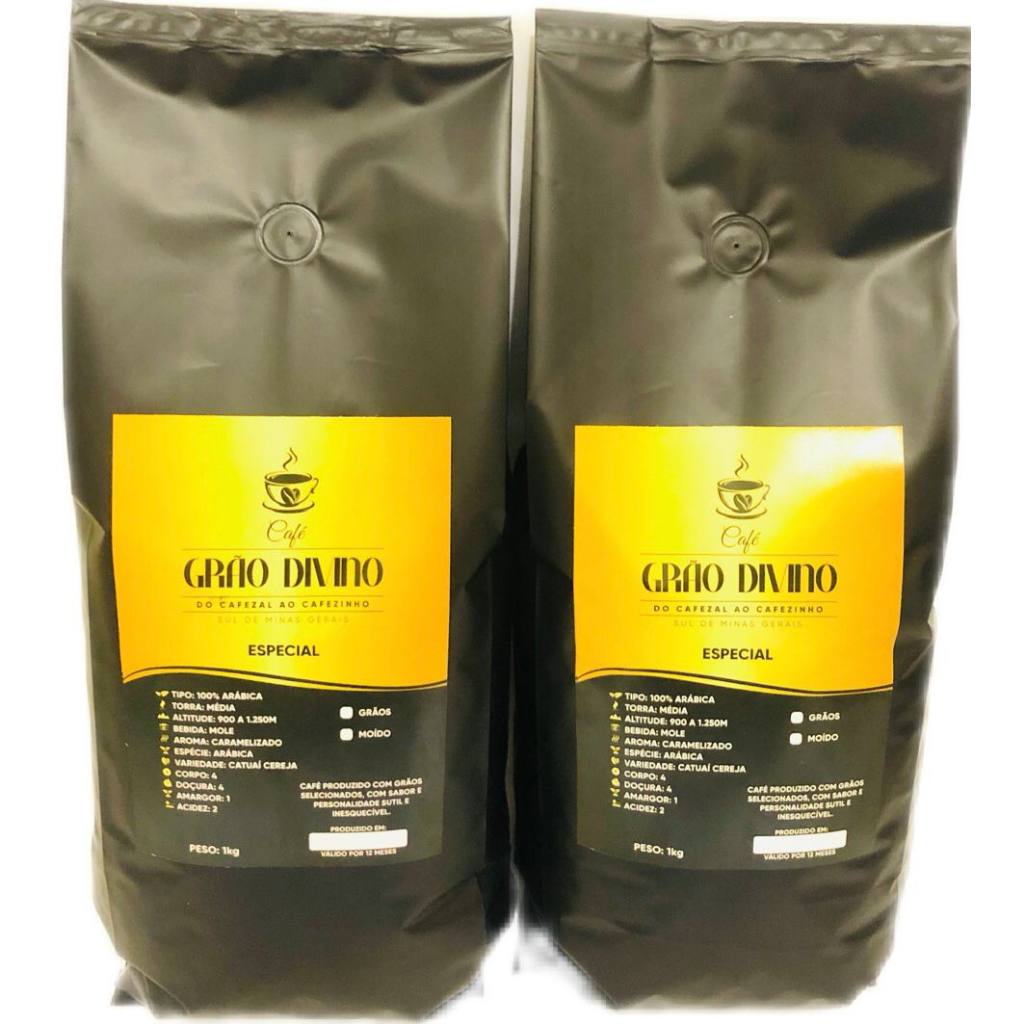 2kg De Café Grão Divino Torrado Em Grãos Premium Especial Com Válvula Aromática Desgaseificadora.