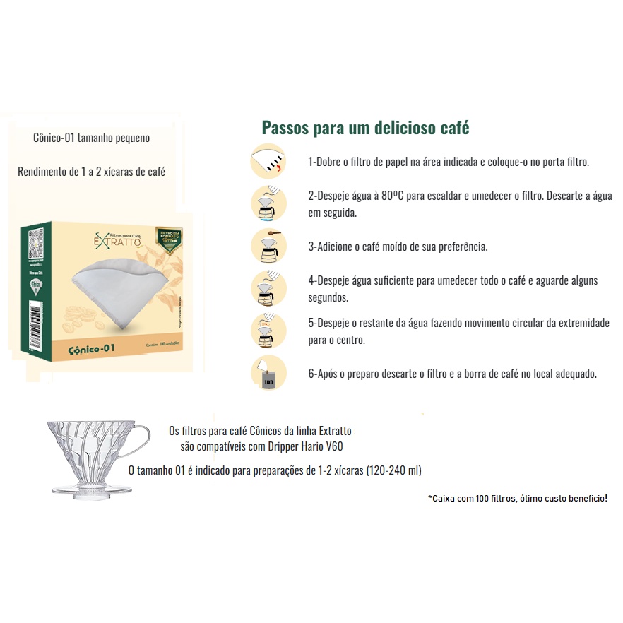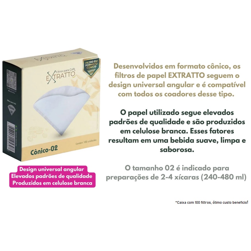 Filtro De Papel Extratto Cônico 100 Unidades Compatível Com V60 02
