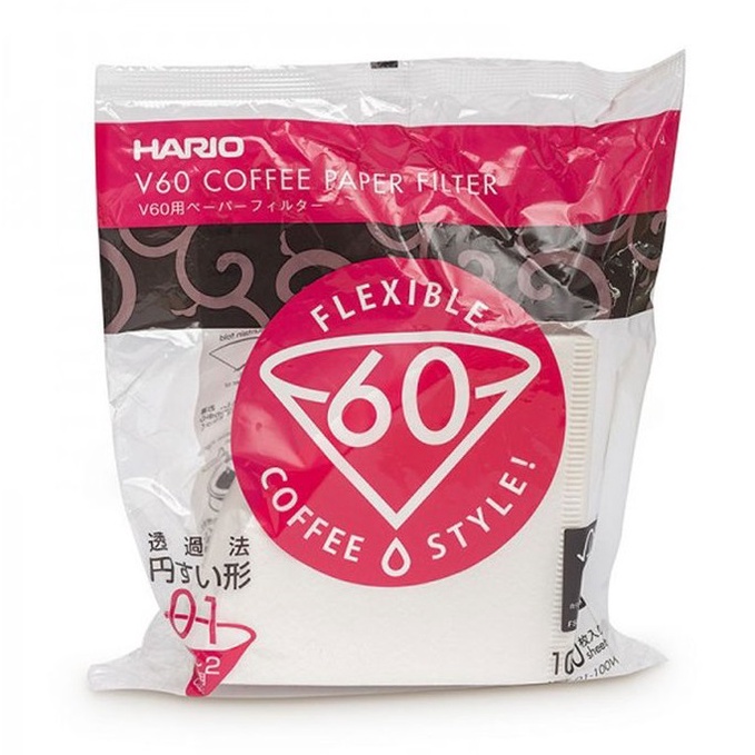 Filtro de Café Hario V60 tamanho 02 e 01 - Natural ou branco Com 100 Unidades.
