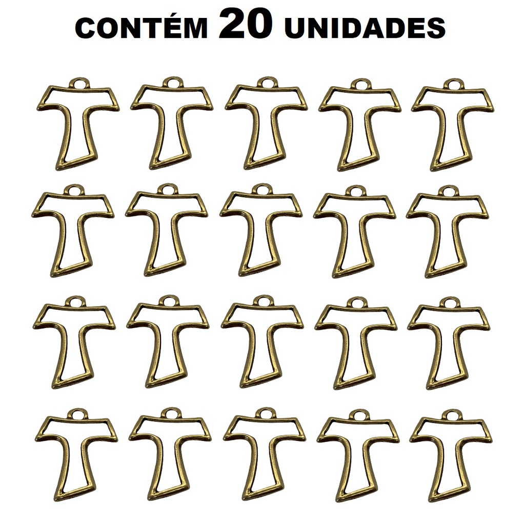 20 Pingentes Tau Modelo Franciscano 3,5 cm Metal vazado
