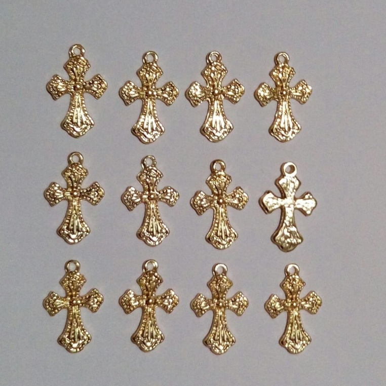 10 UNIDADES PINGENTES MOD-6 CRUCIFIXO/DOURADO/EM METAL BIJUTERIA -25 x 15- mm MONTAGEM DE TERÇOS