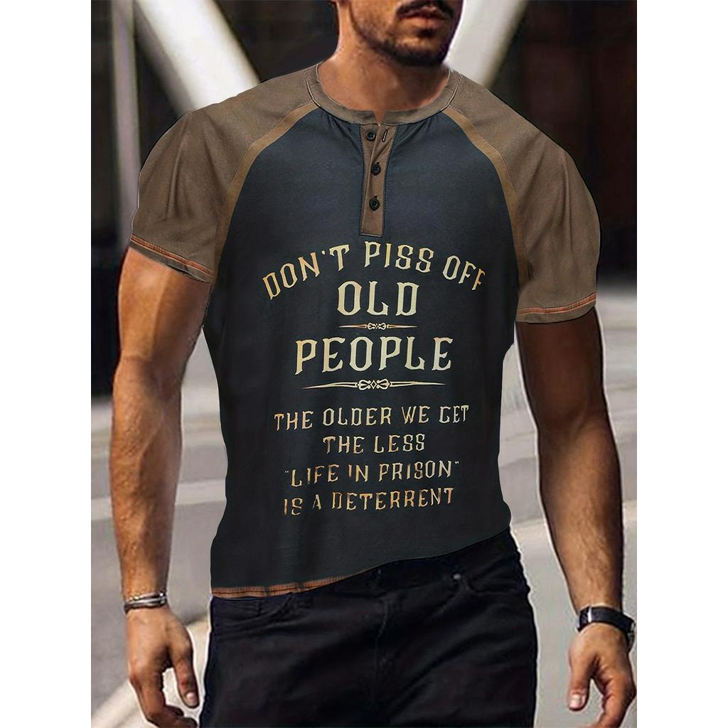 Carta Casual de verão com gola redonda Imprimir camisa Henry do ombro masculino Raglan
