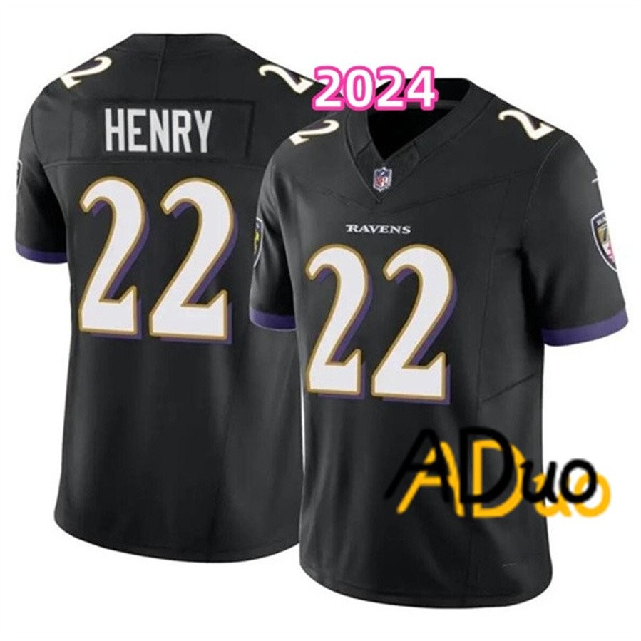 Camisa Masculina Baltimore Ravens # 22 Camisas Derrick Henry Pretas De Futebol 2024