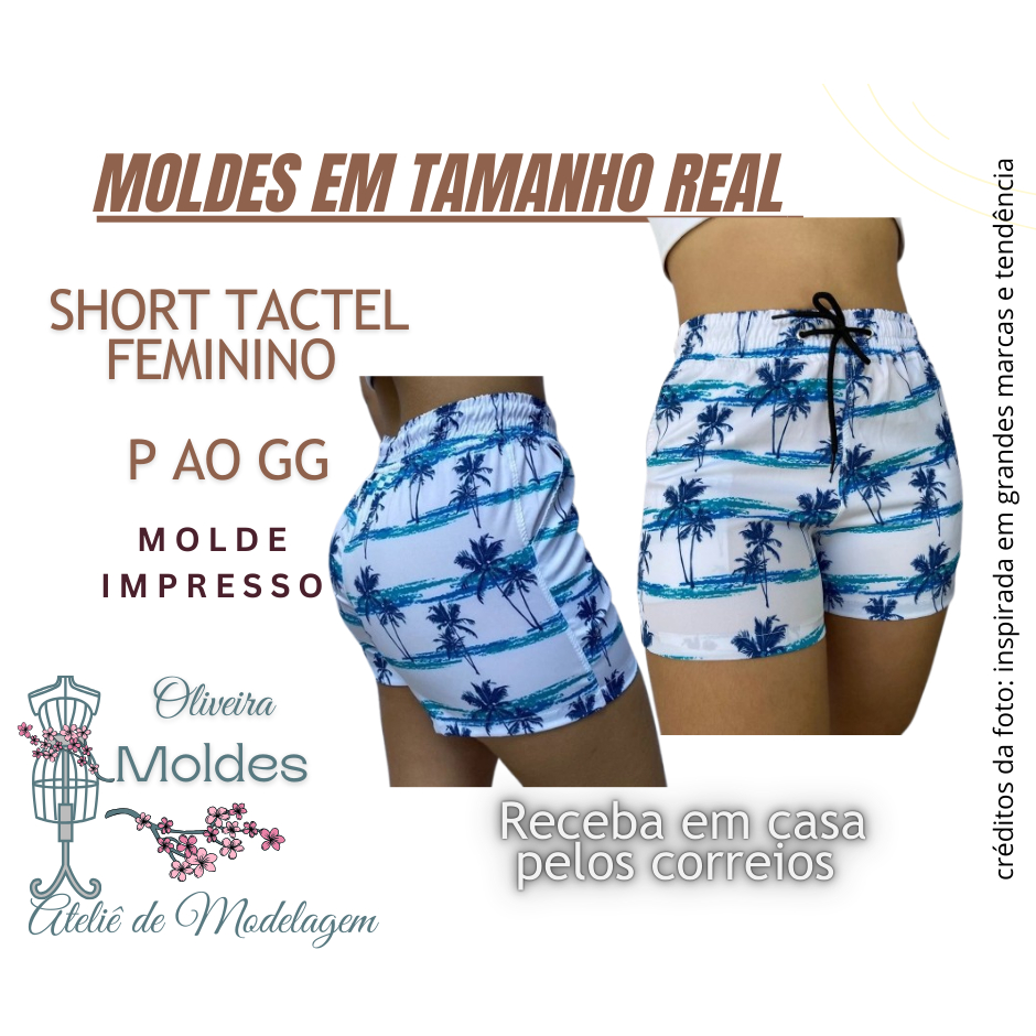 MOLDE SHORT TACTEL FEMININO IMPRESSO EM TAMANHO REAL P AO GG, EM PAPEL 75g