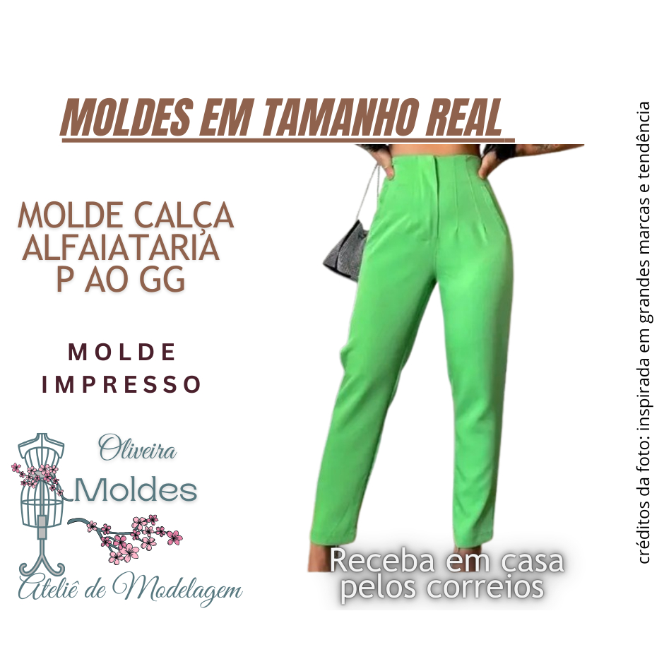 MOLDE CALÇA FEMININA ALFAIATARIA IMPRESSO EM TAMANHO REAL EM PAPEL 75G, TAMANHOS P AO GG