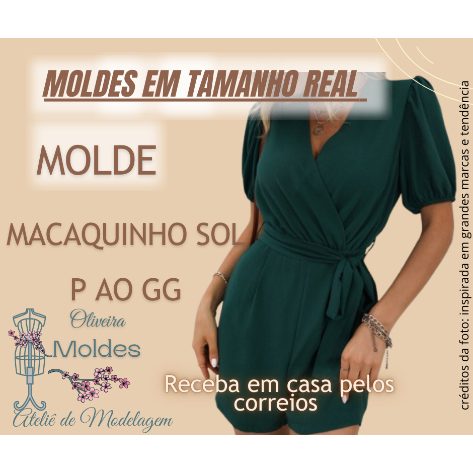 MOLDE VESTIDO CAMPONESA, IMPRESSO EM TAMANHO REAL P AO GG, EM PAPEL 75g