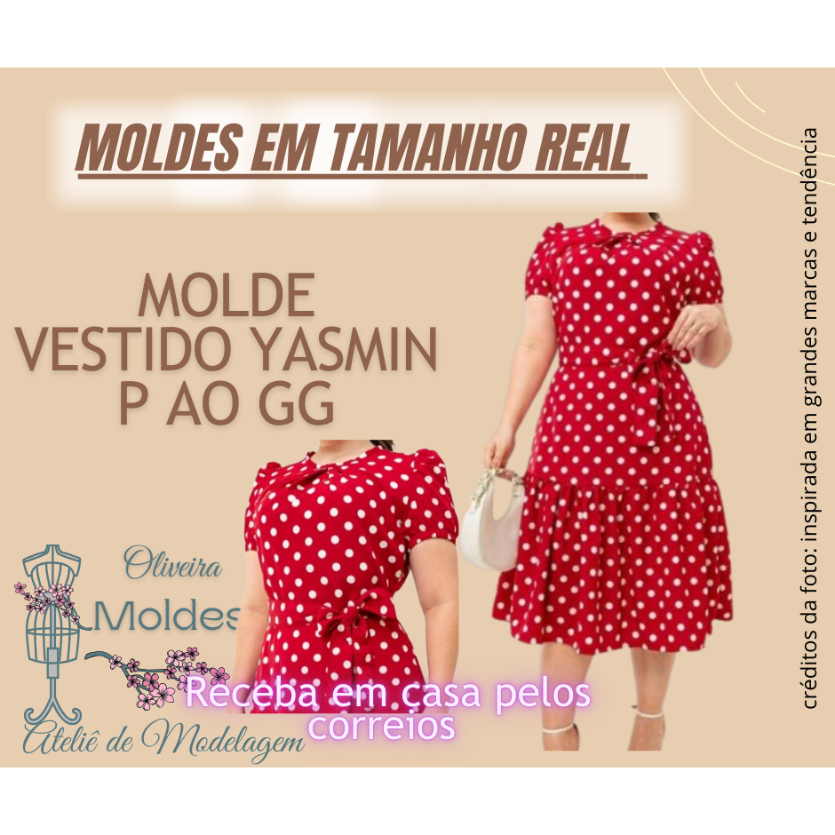 MOLDE VESTIDO MIDI YASMIN IMPRESSO EM TAMANHO REAL P AO GG