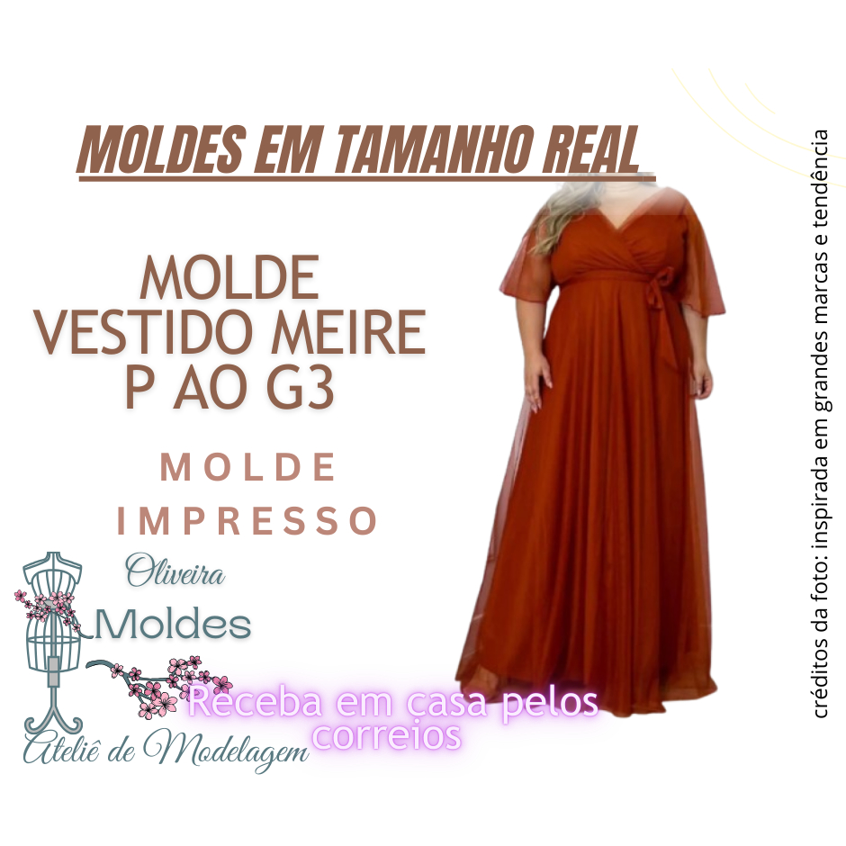 MOLDE VESTIDO MEIRE IMPRESSO EM TAMANHO REAL, GRADE P AO G3