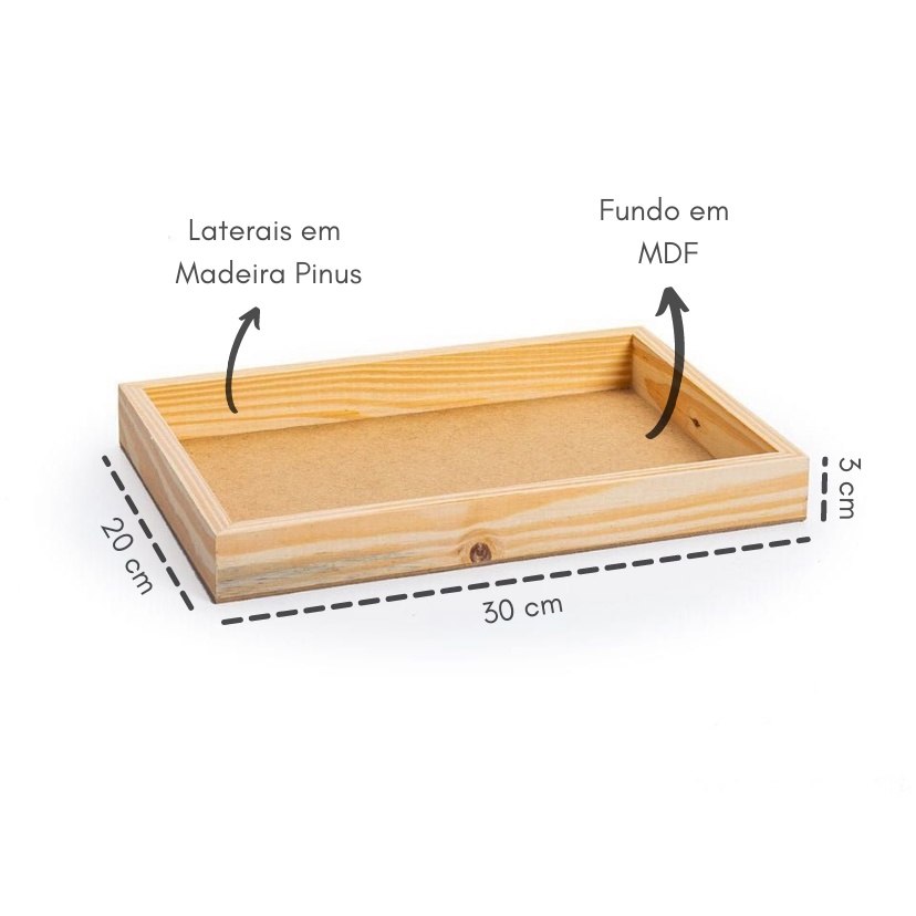 Bandeja de Madeira Pinus Decoração Festa Lavabo Banheiro Cozinha Café da Manhã 30x20