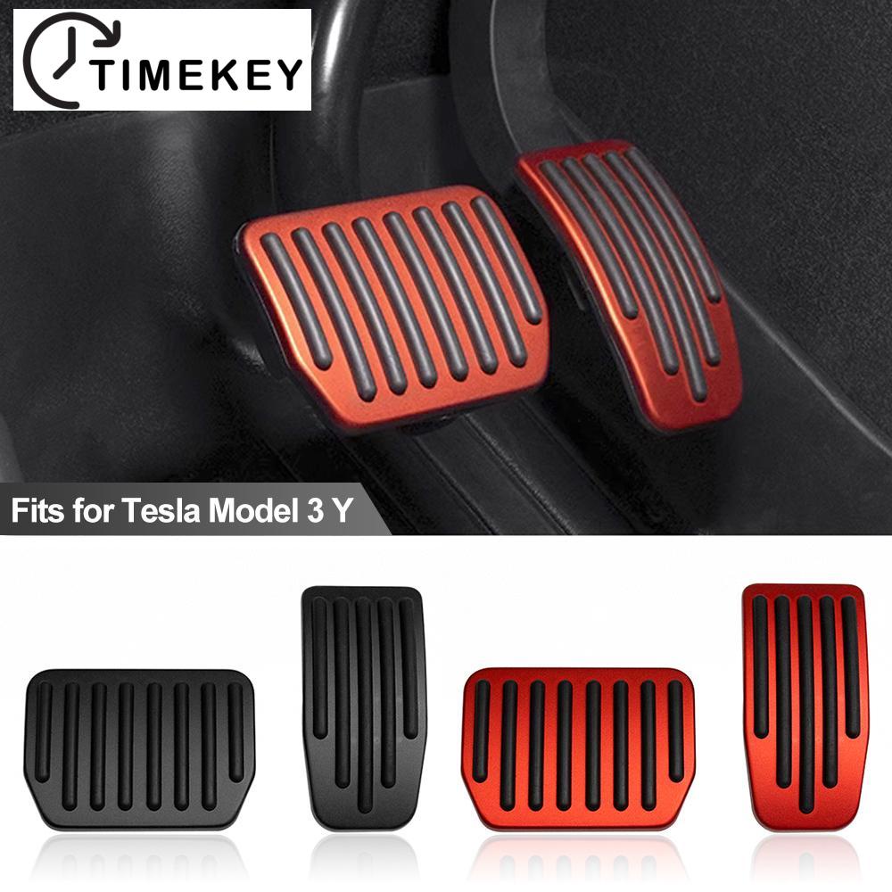 TKEY 2Pcs Pedaleira Do Carro Acelerador Pedal Freio A Gás Capa Acessórios De Liga De Alumínio Para Tesla Modelo 3 Y A5W1