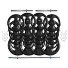 Kit com 100 Kg de Anilhas Ferro Fundido + Barras de Supino e Halteres