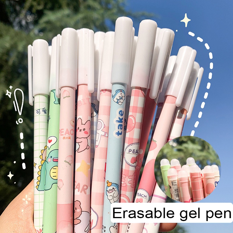 2 + 6Pcs/Set Kawaii Canetas De Gel Apagáveis Em Colorido Azul Recarga 0,5 Mm Nib Esferográfica Para Meninas Escrevendo Artigos Escolares Coreanos Papelaria