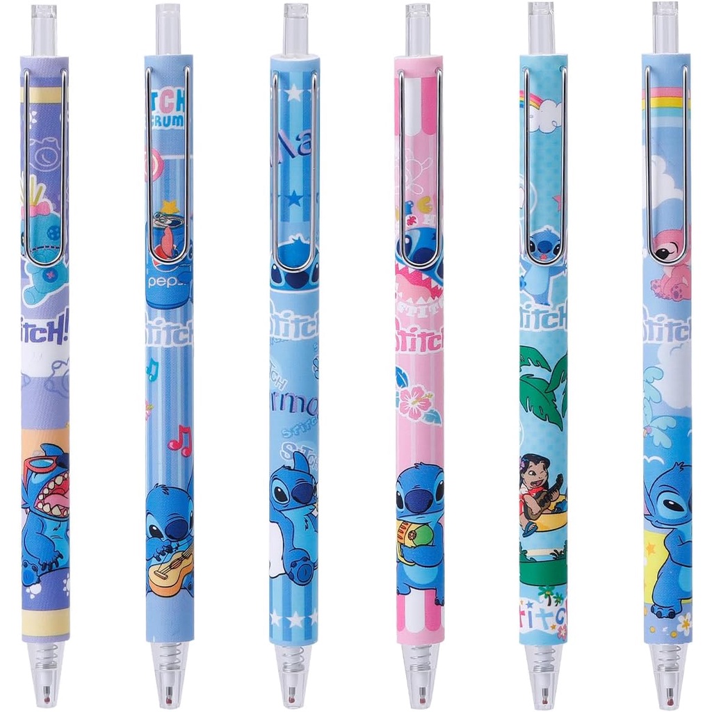 6 Pcs Stitch Gel Canetas De Ponto De Cartoon Anime Tinta Preta De 0,5mm Esferográficas Kawaii Material Escolar Para Meninas (6pcs/Com 10 Recargas De Caneta)
