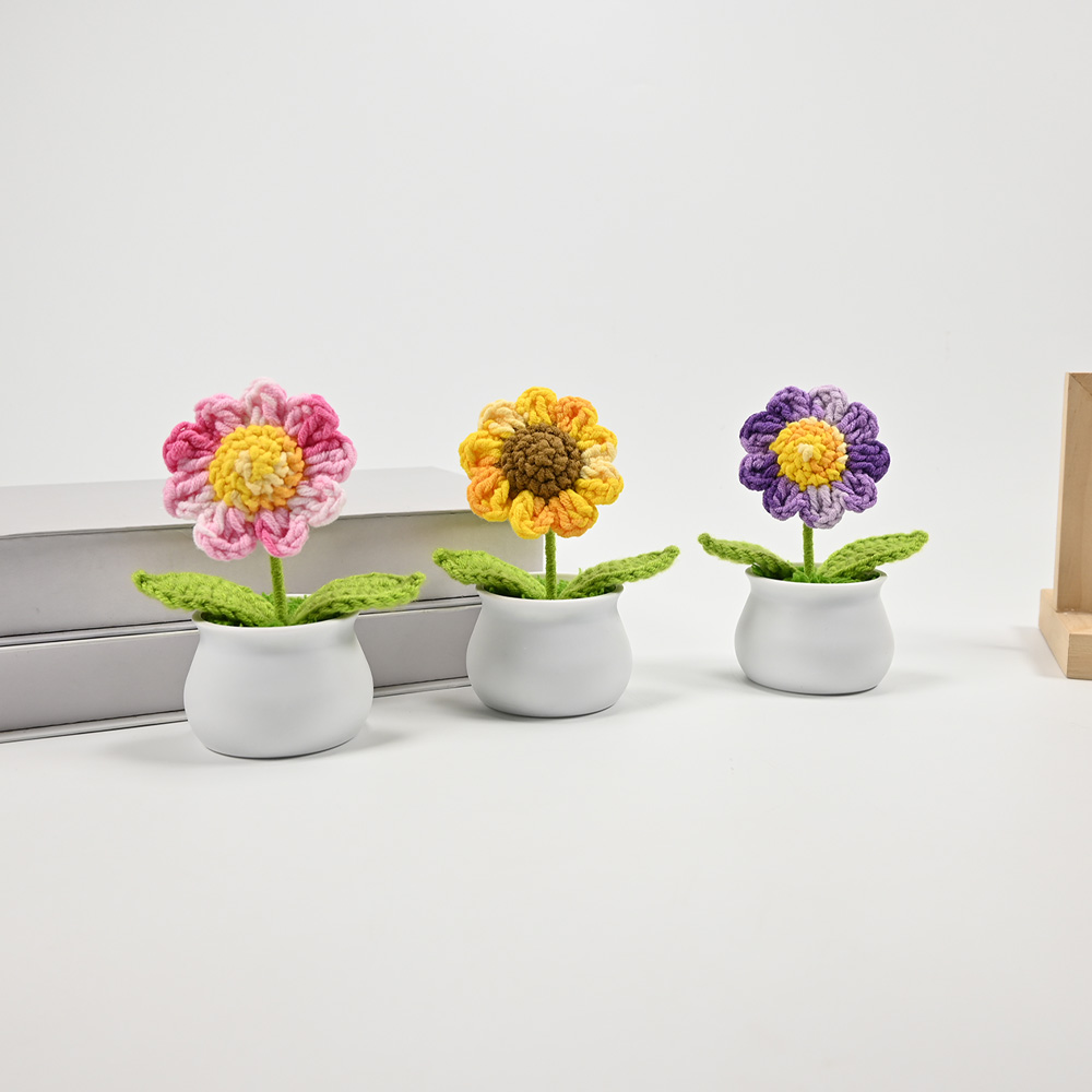 Ornamento de Tecido Girassol Crochê à Mão com Lã Artesanato para Decoração de Casa e Escritório