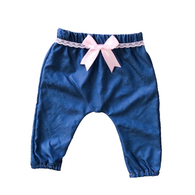 Calça bebê menina IMITA jeans fofa laço roupa infantil pronta entrega