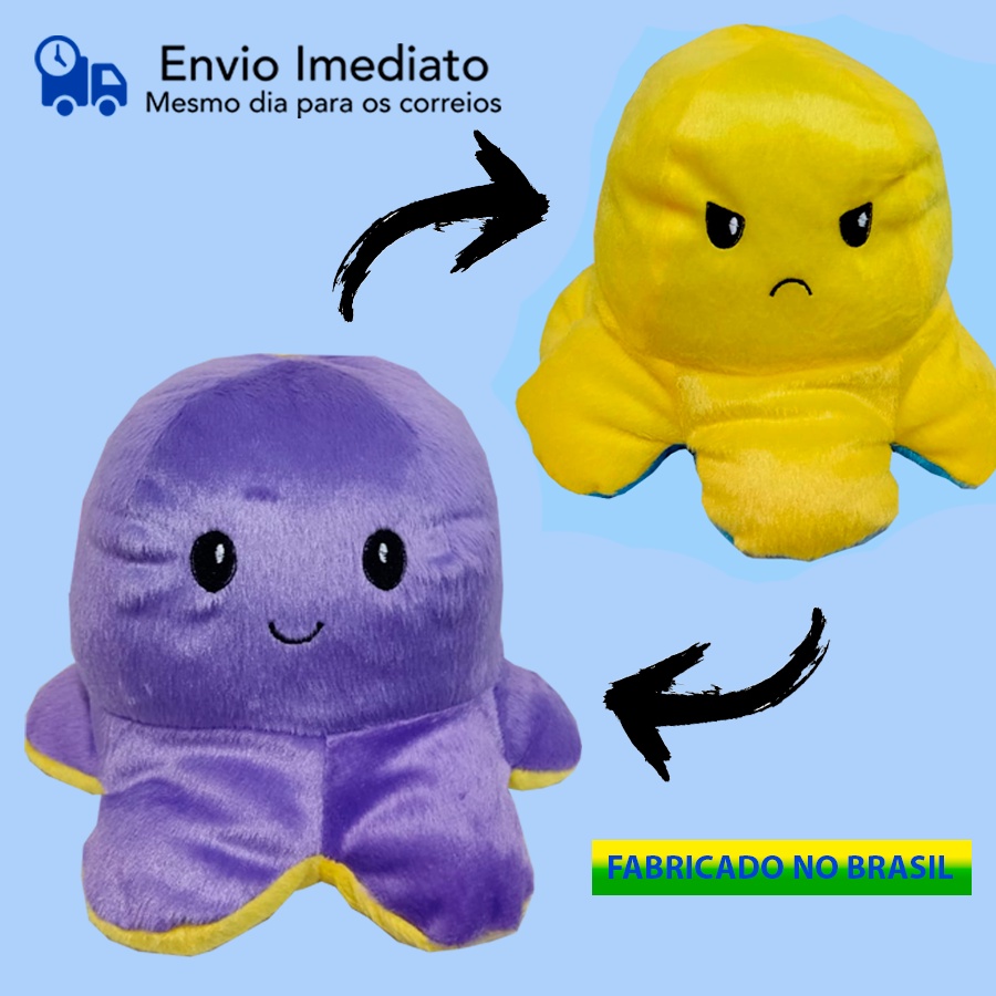 Pelúcia Polvinho Reversível Bipolar do Humor Feliz e Bravo Triste Tik Tok Brinquedo Dupla face Bichos octopus Boneco para Presente Criança Flexível Azul Rosa Envio direto do Brasil Imediato Promoção Blackfriday