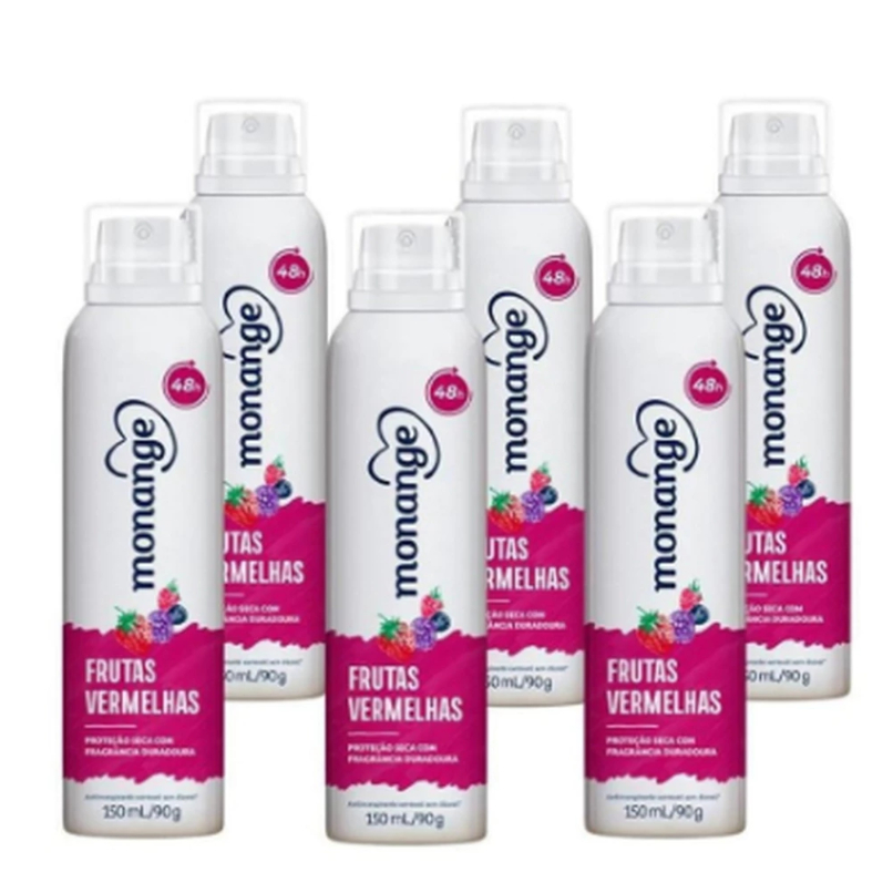 Kit 6x Desodorante Monange Aerosol 150ml Frutas Vermelhas