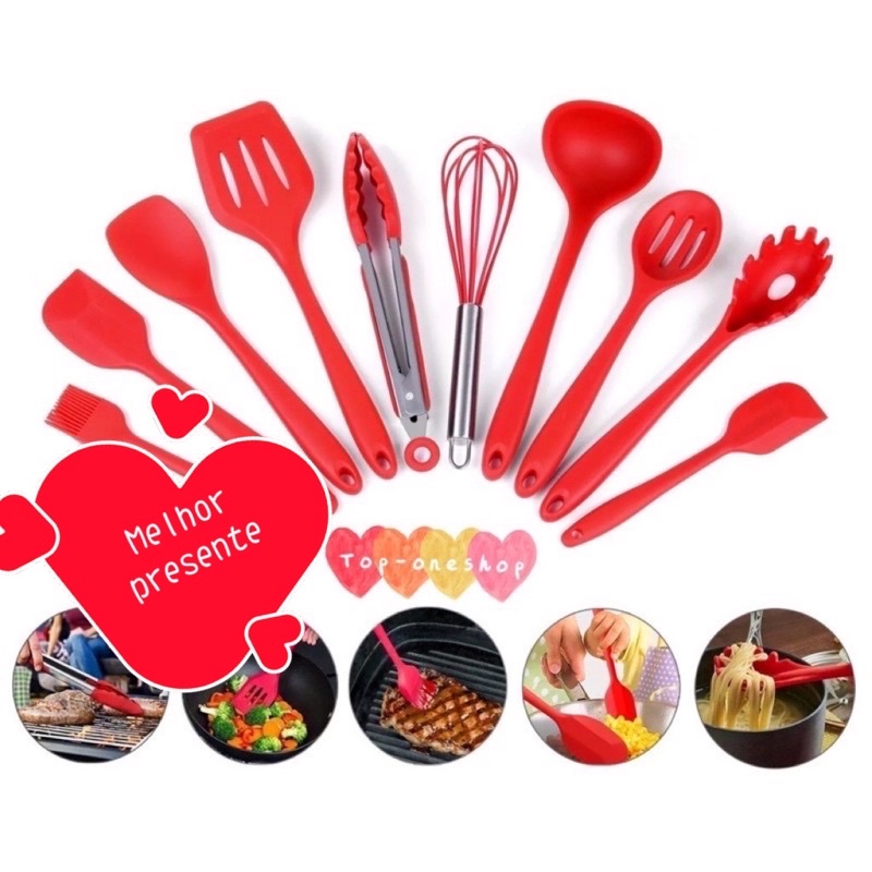Jogo Kit c/12 Peças conjunto utensílios Silicone De Cozinha Colher escumadeira concha escumadeiras fouet espatula de cozinha pegador de macarrao para Cozinha