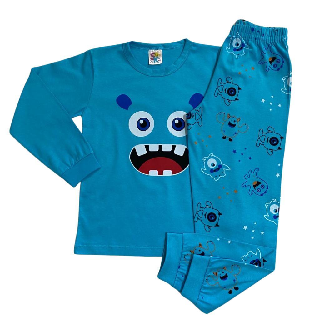 Pijama Infantil Camiseta Manga Comprida 100% Algodão + Calça Roupa Infantil de Menino