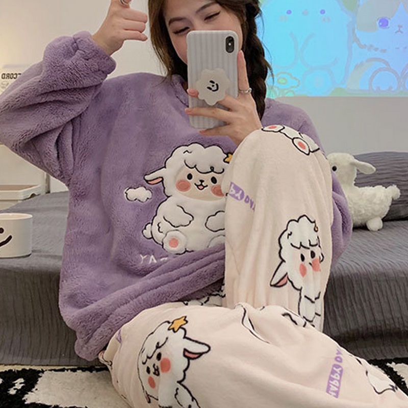 Conjunto De Pijama Peluciado Feminino Blusa Manga Longa e Calca Flanelado Quentinho De Inverno