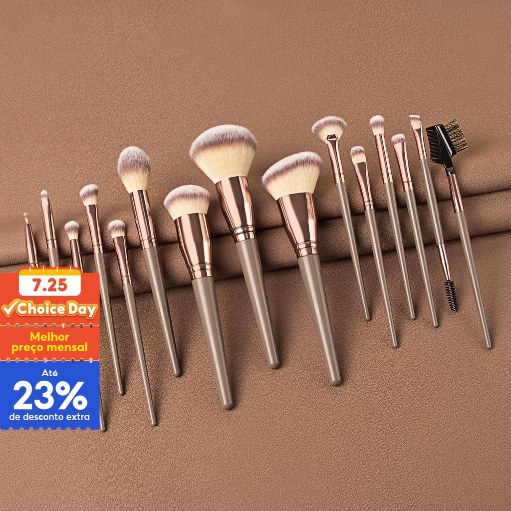 15 Pcs Brown Oversized Makeup Brush Set Maquiagem Ferramentas de Maquiagem Incluem Escova Blush Loose Powder Brush Contour Escova de Pó Solto Fábrica de Escovas para Sombra Venda Direta FINDCOLOR