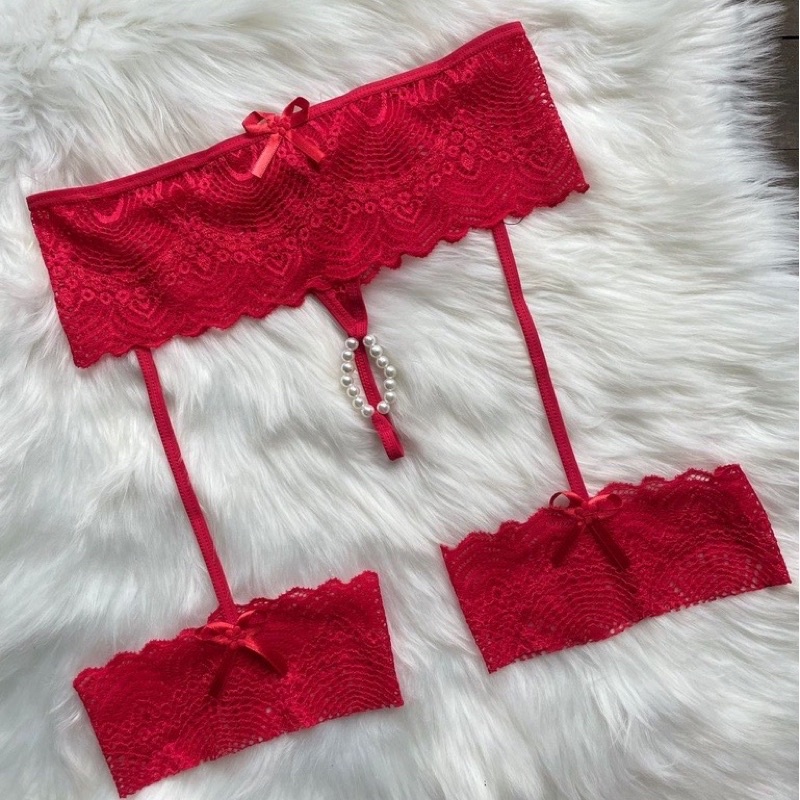 Calcinha Tailandesa + Cinta Liga rendada Persex com Pérolas Eróticas Sexy
