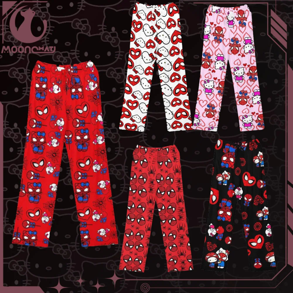2024 Homem Aranha Hello Kitty Loose Ladies Pajama Pants Pyjama Calças Mulheres Homens Desenho Animado De Sono Lounge Vestir Menina