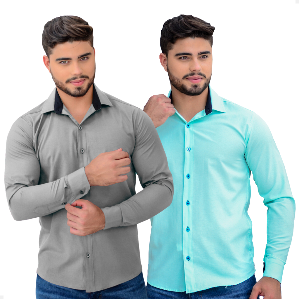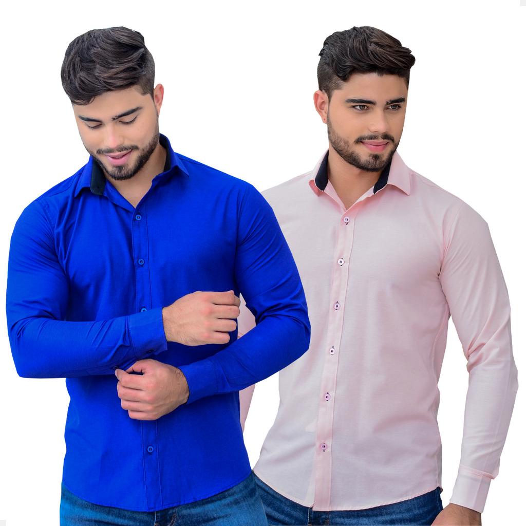 Kit 2 Camisa Social Masculina Slim Fit Manga Longa Luxo Exclusiva