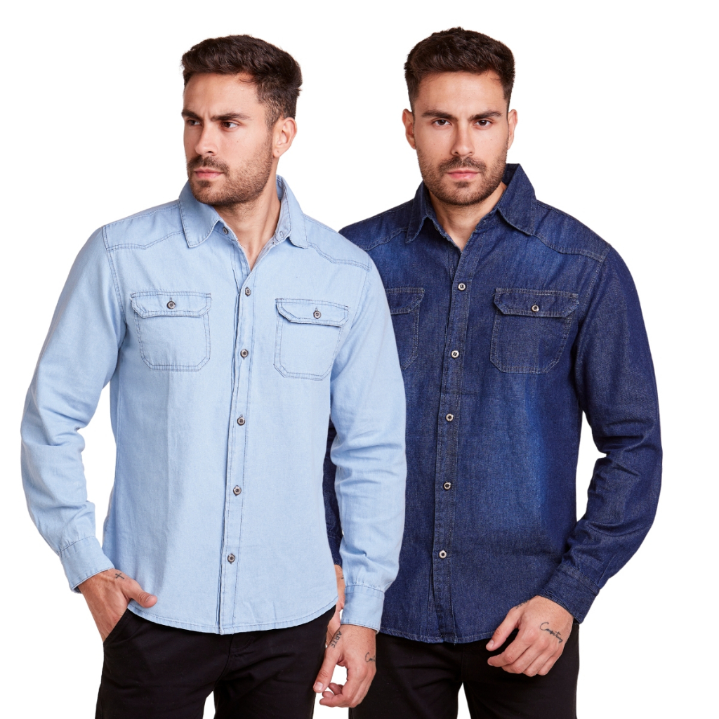 Kit 2 Camisa Jeans Masculina Manga Longa Slim Fit Social Moda Masculina Premium