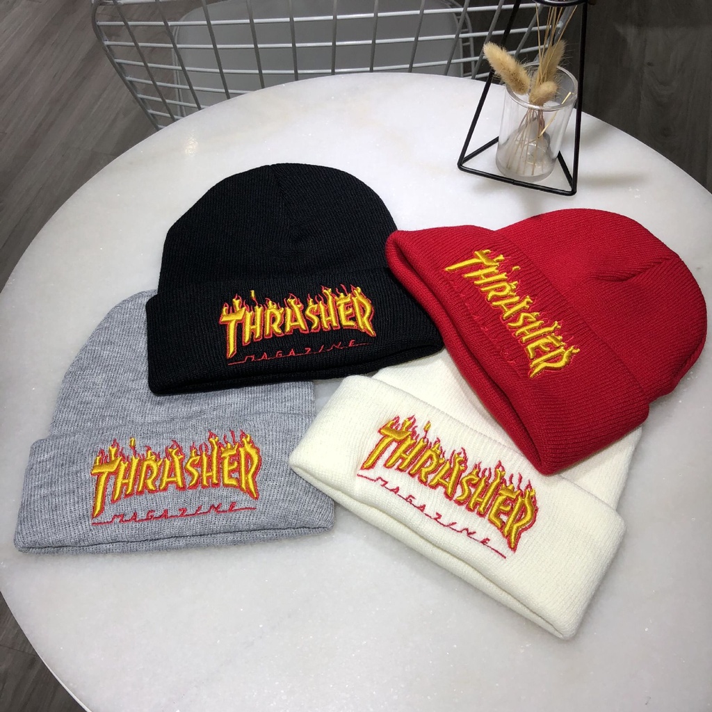 Chapéu De Malha De Moda Outono Inverno Quente Chama THRASHER Letra Bordado Homem E Mulher Lã