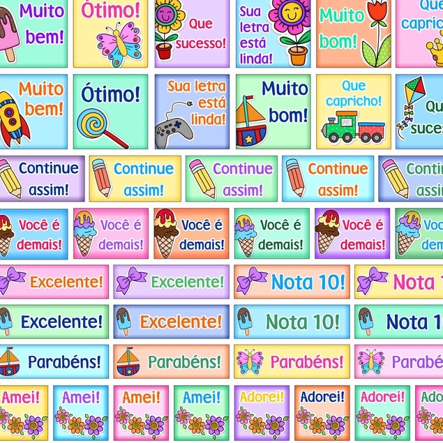 Folha de Etiquetas Adesivas de Incentivo escolar para cadernos, livros, alunos professores. Material Escolar. Papelaria