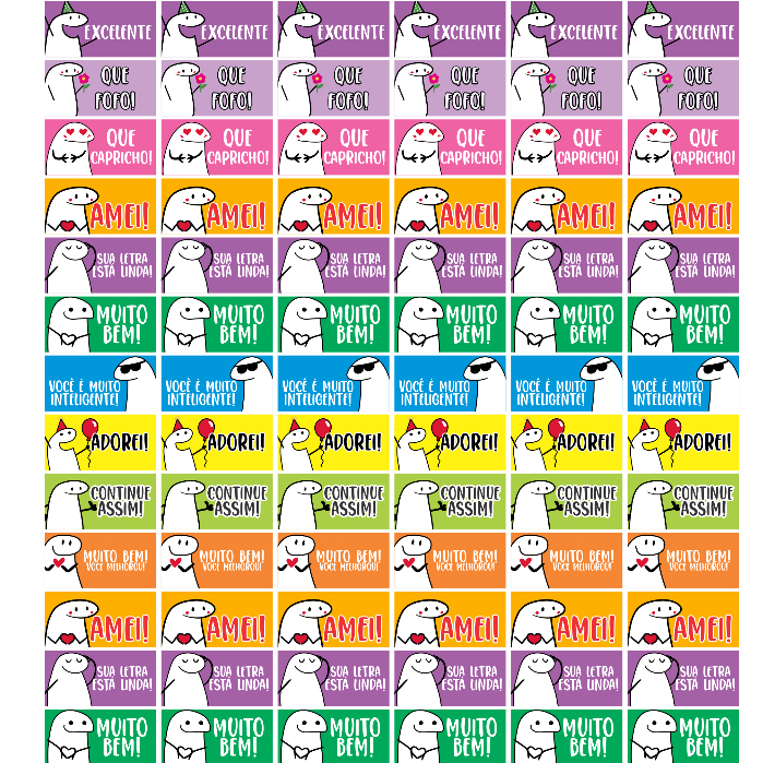 Folha de Etiquetas Adesivas de Incentivo Flork Meme Bento para cadernos, livros, alunos e professores. Material Escolar. Papelaria Personalizada.