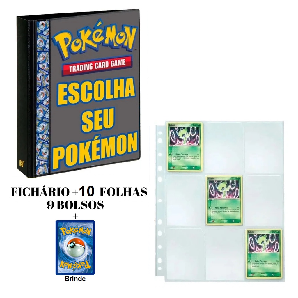 Fichário Álbum Pasta Pokémon + 10 Folhas + 10 Cartas