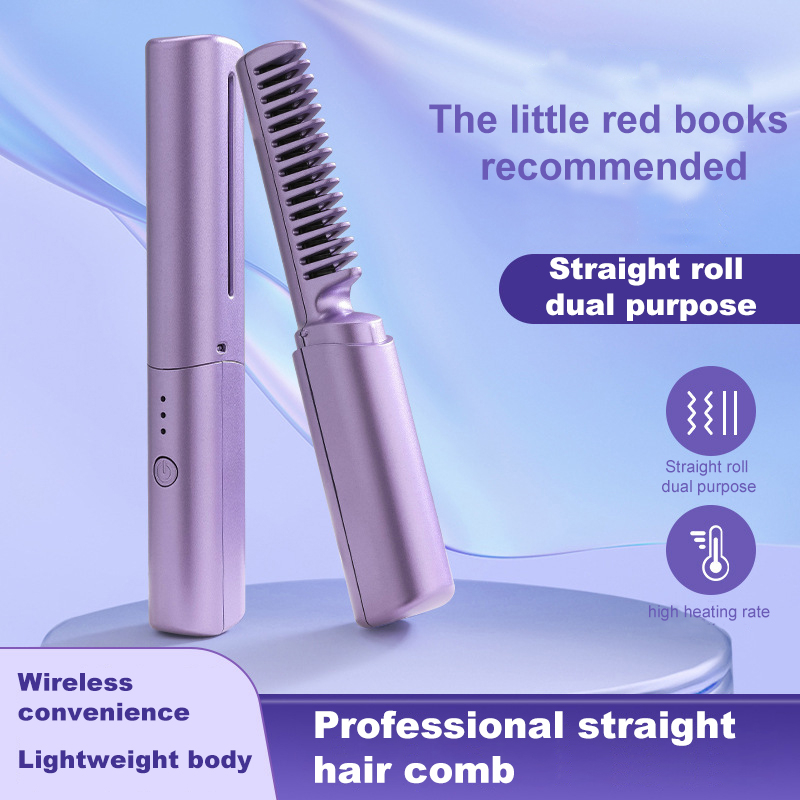 Wireless Alisamento do Cabelo Pente Íons Negativos Não Machucam O Elétrico Portátil Alisador De Cabelos Grampo De Ferro De Frisar Placa De Uso Duplo anti-Estático