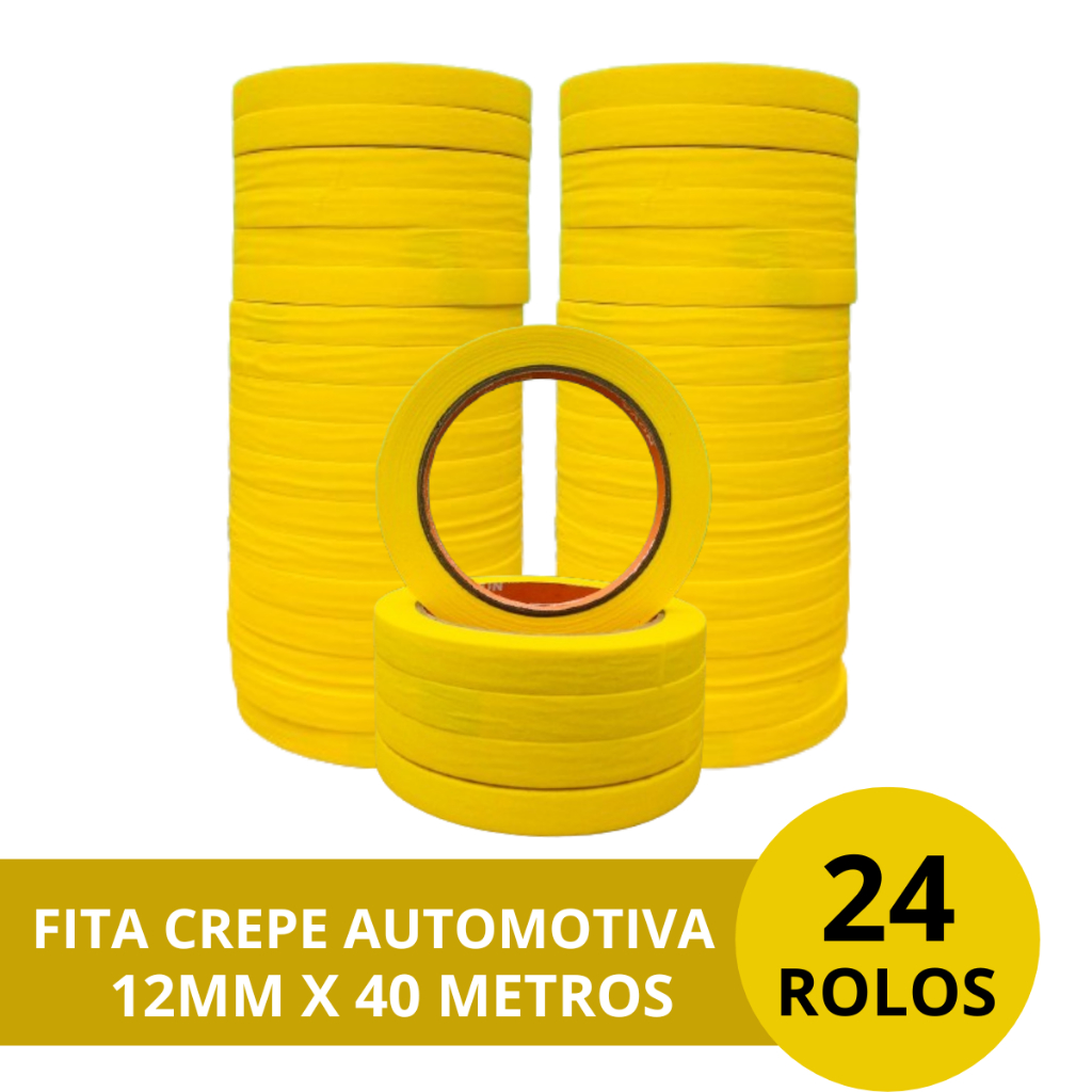 KIT 24 ROLOS DE FITA CREPE AUTOMOTIVA 12MM X 40M - ALTA PERFORMANCE PROFISSIONAL